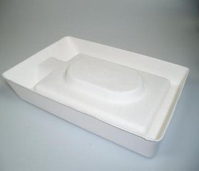 纸浆模塑制品是以纸箱边角料、新闻纸、白色纯木浆等为原料,经过碎浆并调配成一定浓度的浆料,在特制的模具上经真空吸附成型,再经过干燥而成不同种类和用途的内衬体包装制品。这种包装制品,具有与包装物外型相吻合的几何形状和良好的防震、防冲击、防静电、防腐保护效果,经各项物理指标测试,其性能和功效足以替代并优于发泡致辞苯乙稀(EPS)、PS和PVC包装制品,并且在防震功能、环保、价格及防静电等指标和功能上占据优势。广泛适用于电子、家电、工业仪表、机械零部件、电工工具、电脑、家电、玻璃、陶瓷和农产品等行业的内衬包装上。