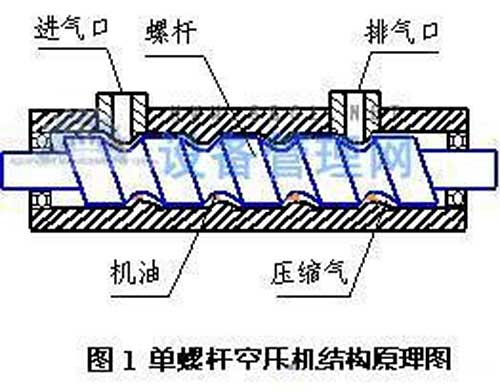 螺杆式空气压缩机:用可靠性高的螺杆式空压机取代易损件多、可靠性差的活塞式空压机,已经成为必然趋势。根据统计:日本螺杆压缩机1976年仅占27%,1985年则上升到85%。而螺杆空压机市场占有率为80%,并保持上升势头。螺杆空压机有双螺杆与单螺杆两种。双螺杆空压机的发明比单螺杆空压机晚十几年,设计上双螺杆式空压机更趋合理、先进。双螺杆空压机克服了单螺杆空压机不平衡、轴承易损的缺点,具有寿命长、噪音低、更加节能等优点。八十年代技术成熟后,其应用范围在日渐扩大。优点是:运行时噪音低,长时间运行供气稳定、维护简单、使用寿命长等特点。缺点是:目前价格较高,制造精度和要求较高。