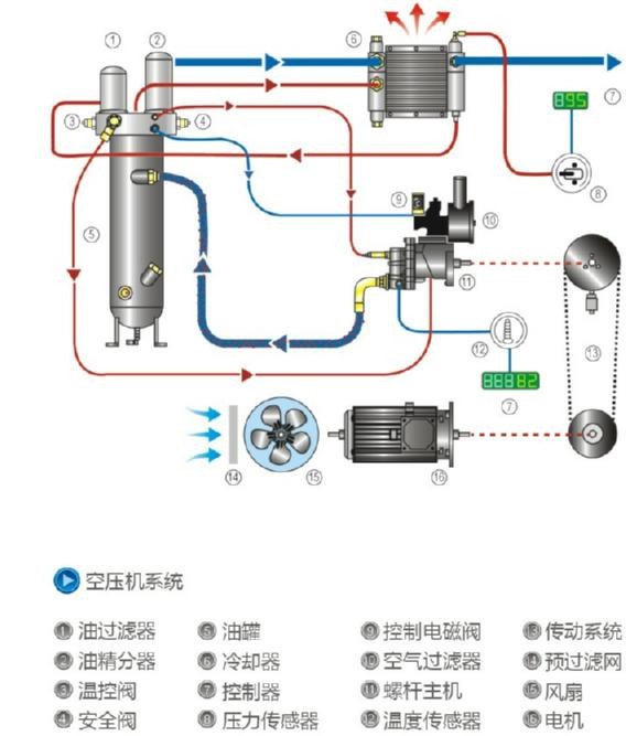 空气压缩机的类型:常用的空气压缩机有活塞式空气压缩机,螺杆式空气压缩机。